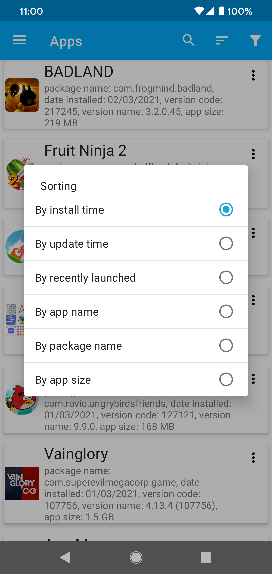 Prepare yourself for the sleekest interface you could imagine! The App Manager’s design is not just smart; it’s downright user-friendly. It gathers information about all your apps and displays it in a neat list format for easy management. Feeling adventurous? You can tweak the sort order based on installation time, update time, and more! Organizing your apps has never been easier or more personalized.