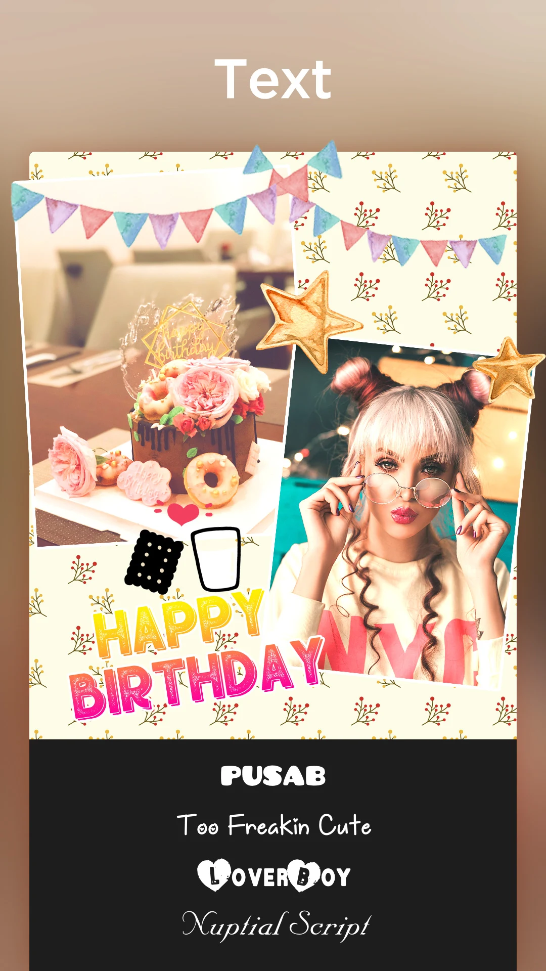 Watch your stickers and text come to life within your collage for an extra sprinkle of magic!