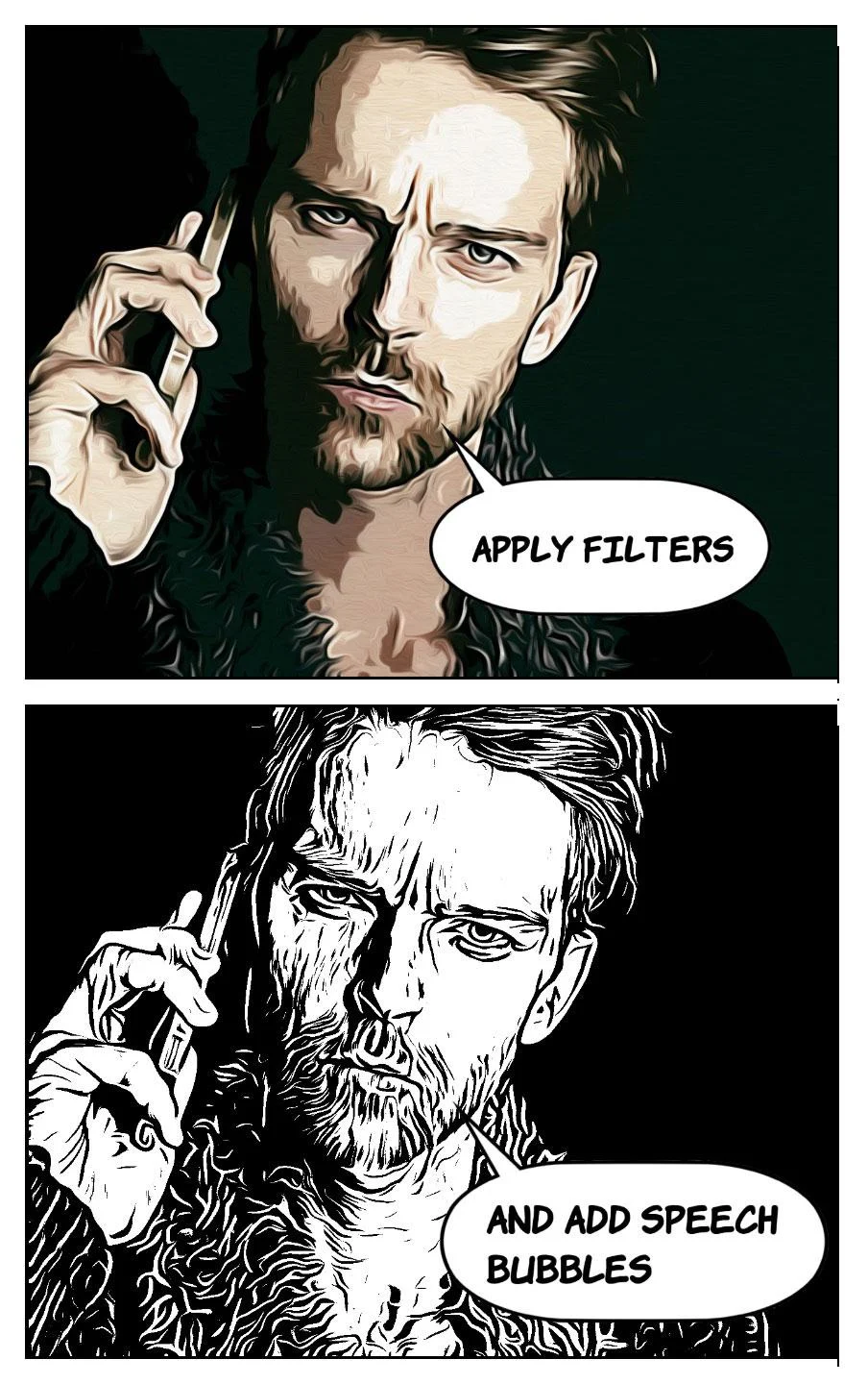 Exploring Comica is half the fun, especially when it comes to selecting the perfect filter for your images. Filters breathe life into your photos, transforming them into genuine comic pages. For instance, black and white filters bring a distinct charm that'll make your work stand out!