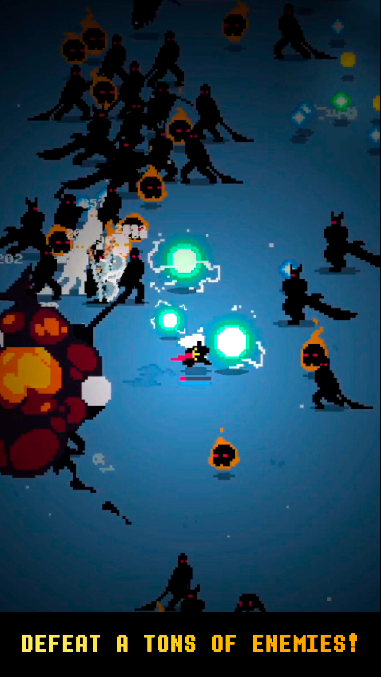 Demon Survival: Roguelite RPG captivates players with its striking visuals and atmospheric sound. The game features shadow images for both the protagonist and monsters, effectively utilizing the dark dungeon aesthetics to highlight a mesmerizing array of glowing weapons and spells. The classic 8-bit pixel art design creates an engaging world where shadowy combat becomes addictive. As you unleash attacks, vibrant streaks of light flash and change colors, igniting an adrenaline rush—an experience that’s impossible to ignore.