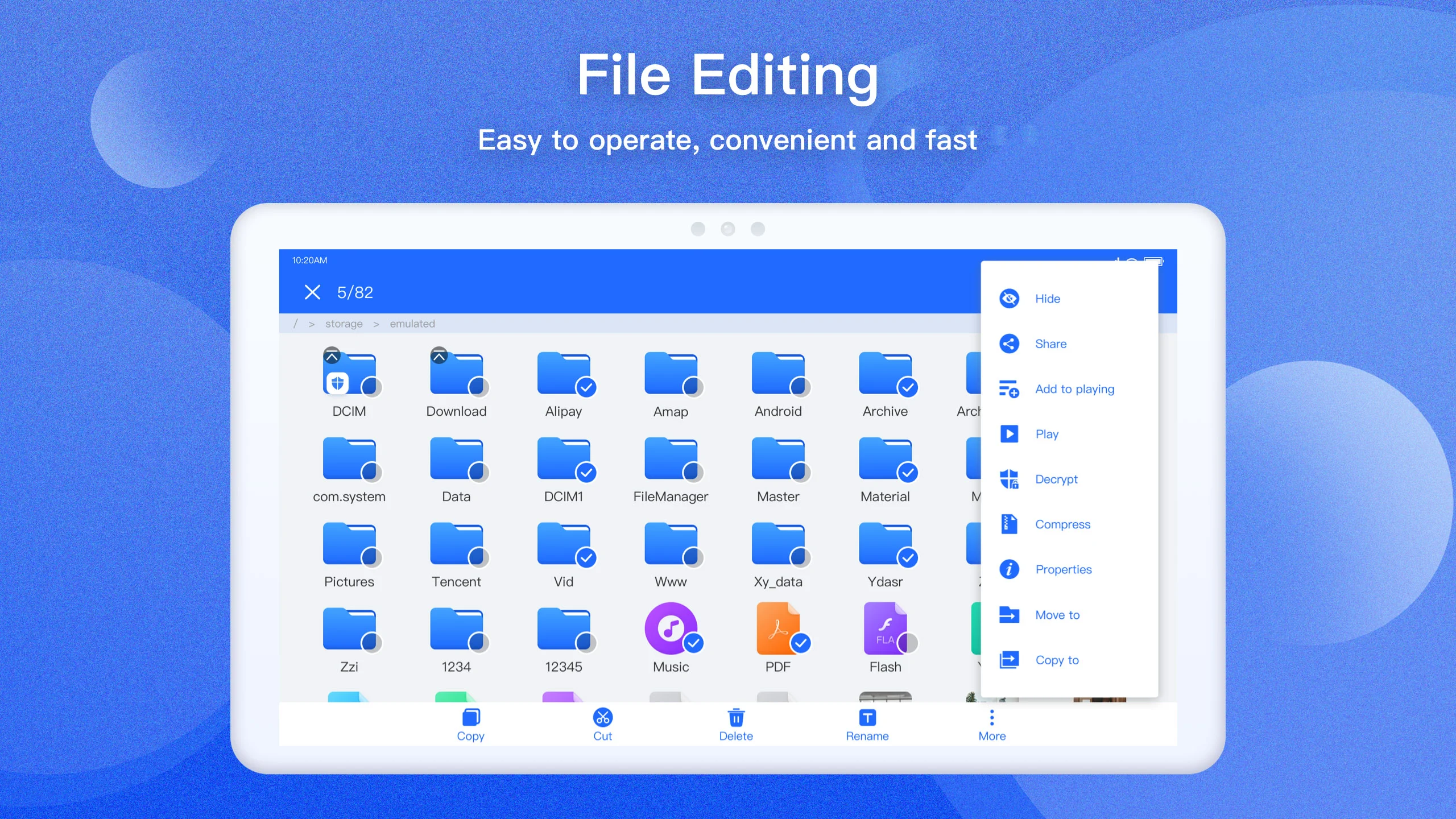 Who needs complicated instructions when you've got a comprehensive toolkit right in your pocket? EX File Manager simplifies file management with numerous functions: from cutting, copying, and pasting, to moving, renaming, and sharing files. You have complete control over your file system, making your organizing experience not just productive but downright enjoyable. Whether it's creating shortcuts or bookmarking important files, every action is just a tap away!