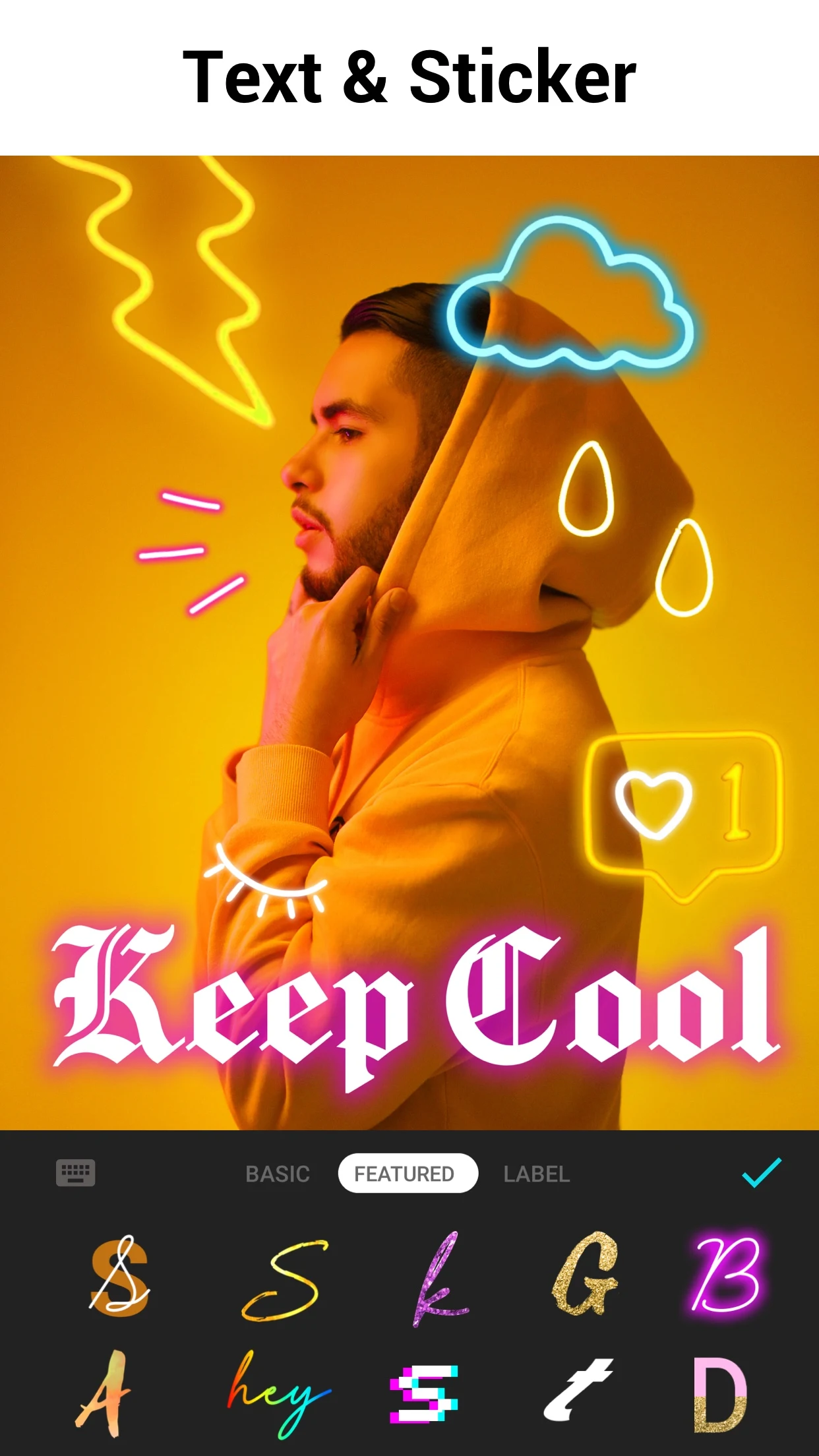 Completing your masterpiece is easy with Lumii’s range of frames. After editing your photos, you can add stylish borders that take your creation to the next level. Choose beautifully categorized frames and pair them with adorable stickers for that personal touch. Each photo is uniquely yours!