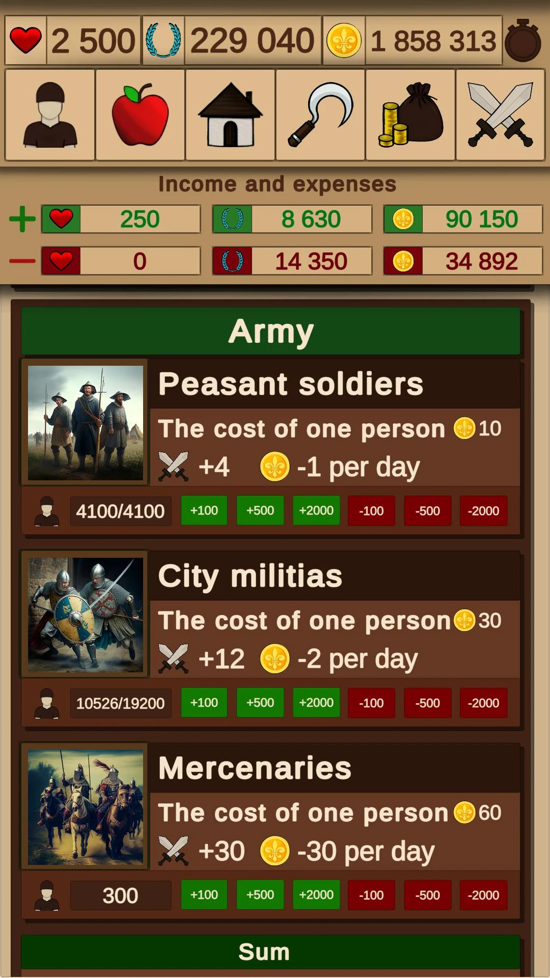 Survival in this medieval world requires constant effort. Even when you ascend to power, the responsibility of feeding your army and maintaining morale falls squarely on your shoulders. Clothes and weapons are crucial for soldiers' combat readiness, but there’s another route to acquiring wealth: warfare. Engage in battles not only to defend your realm but also to seize enemy resources that will bolster your own economy.