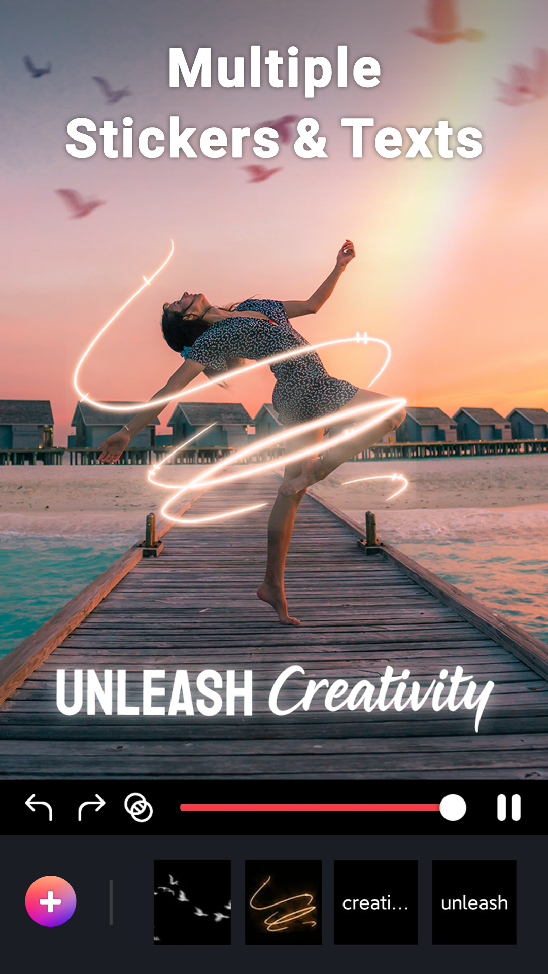 When the sky in your photos looks lackluster, don’t fret! The Dynamic Sky Correction effect in Movepic can spruce it right up. Change the ambiance to add dolphins leaping through pink clouds or an astronaut floating across a moody backdrop—possibilities are endless!