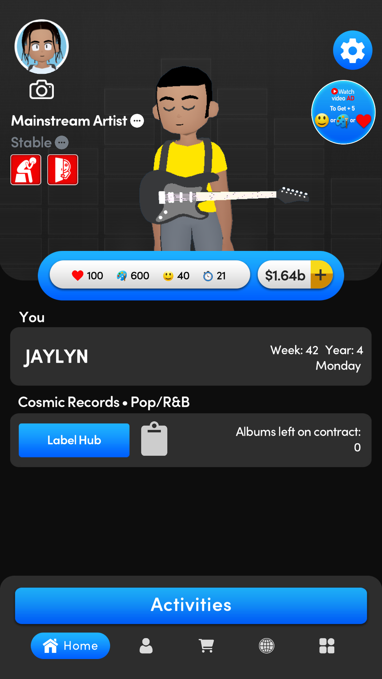 As you rise to fame, release singles, albums, EPs, and even music videos. Take your music worldwide by playing shows and touring while promoting your records through appearances in various media outlets. Address life events affecting your health, creativity, and happiness—you'll need to manage your career astutely, possibly joining a band or striking out as a solo artist. Keep track of your releases on both pure sales charts and streaming equivalents while competing to hit number one against other aspiring artists.