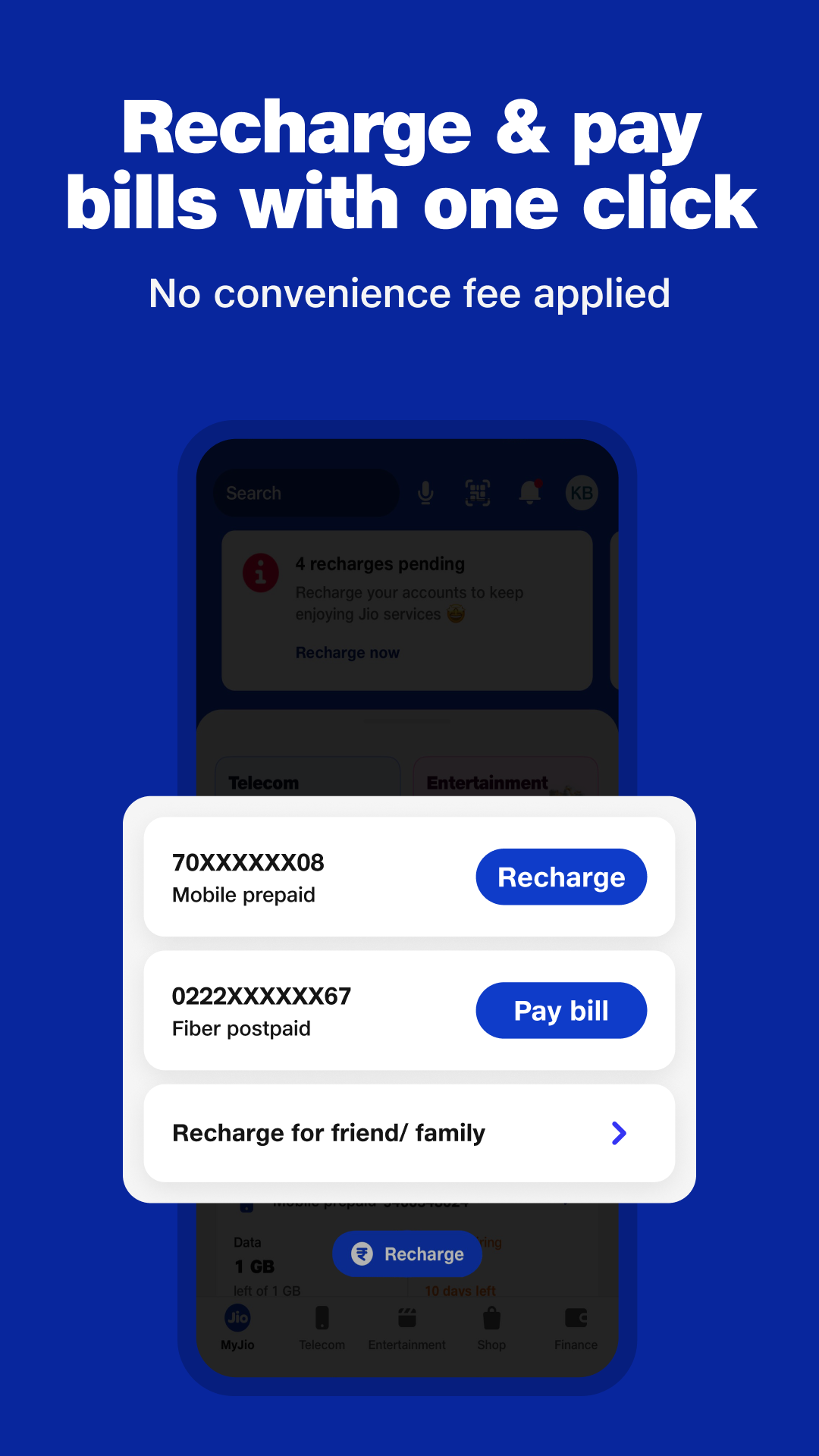 Need help troubleshooting? No problem! Jiocare is there for live chat assistance available in both English and Hindi. Troubleshooting your network or recharging is a breeze when you have this app always ready at hand. You can even dive into a treasure trove of informative guides whenever you face a hiccup!