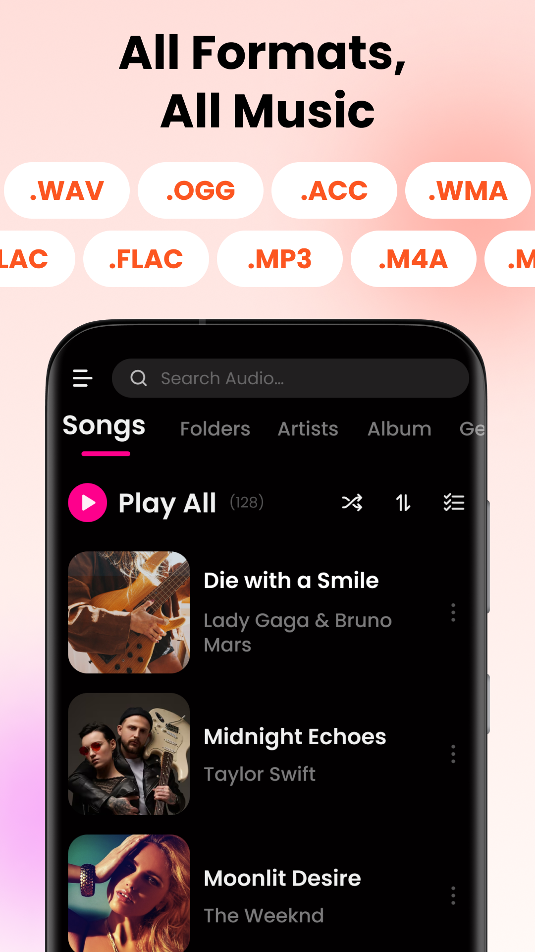Make personalized playlists tailored to your needs. Whether you're running, studying, or working, this audio player keeps your tunes ready. Collect all your favorite songs and enjoy uninterrupted music sessions.