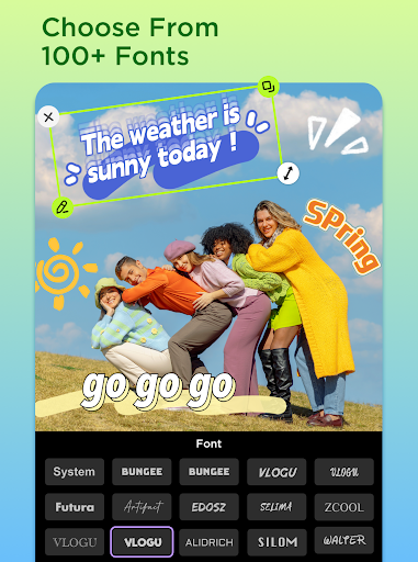 Elevate your creations with fun text fonts and playful stickers. Choose from over 200 designer fonts and decorate your collages with seasonal stickers and emojis. Enhance your visual storytelling by integrating personal touches, such as camera shots or DIY images.