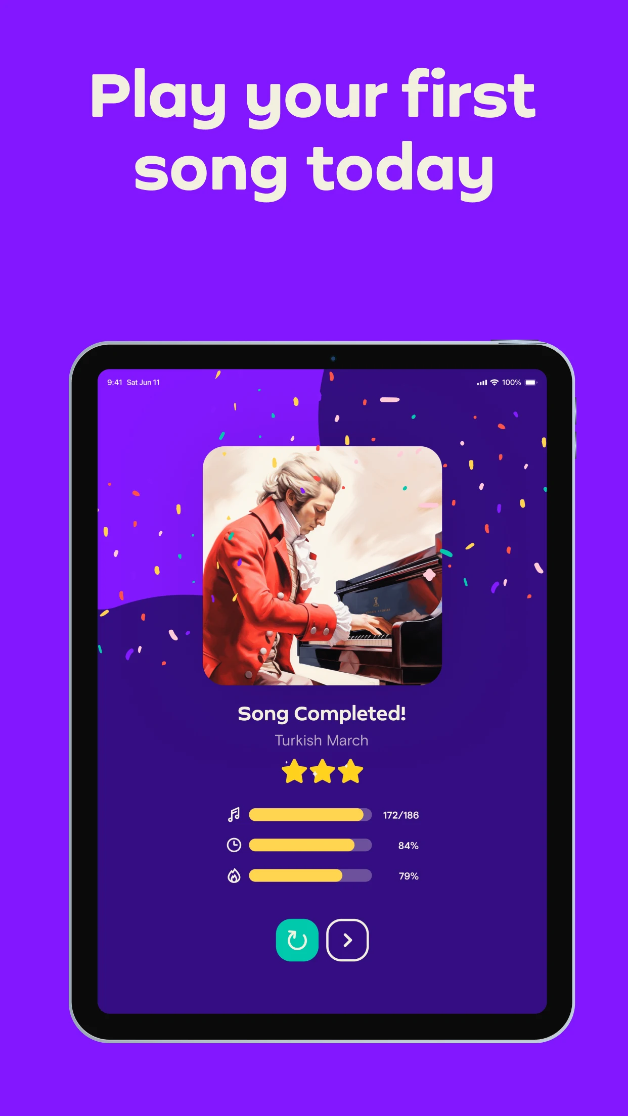 So how do you get started? Simple! Just place your smartphone or tablet on your acoustic or MIDI keyboard, and let the magic happen as the software recognizes what you’re playing almost instantly. Immediate feedback helps you refine your skills quickly. With courses designed to mimic two years' worth of piano instruction (and continuous new content being added), there’s plenty to keep you busy!