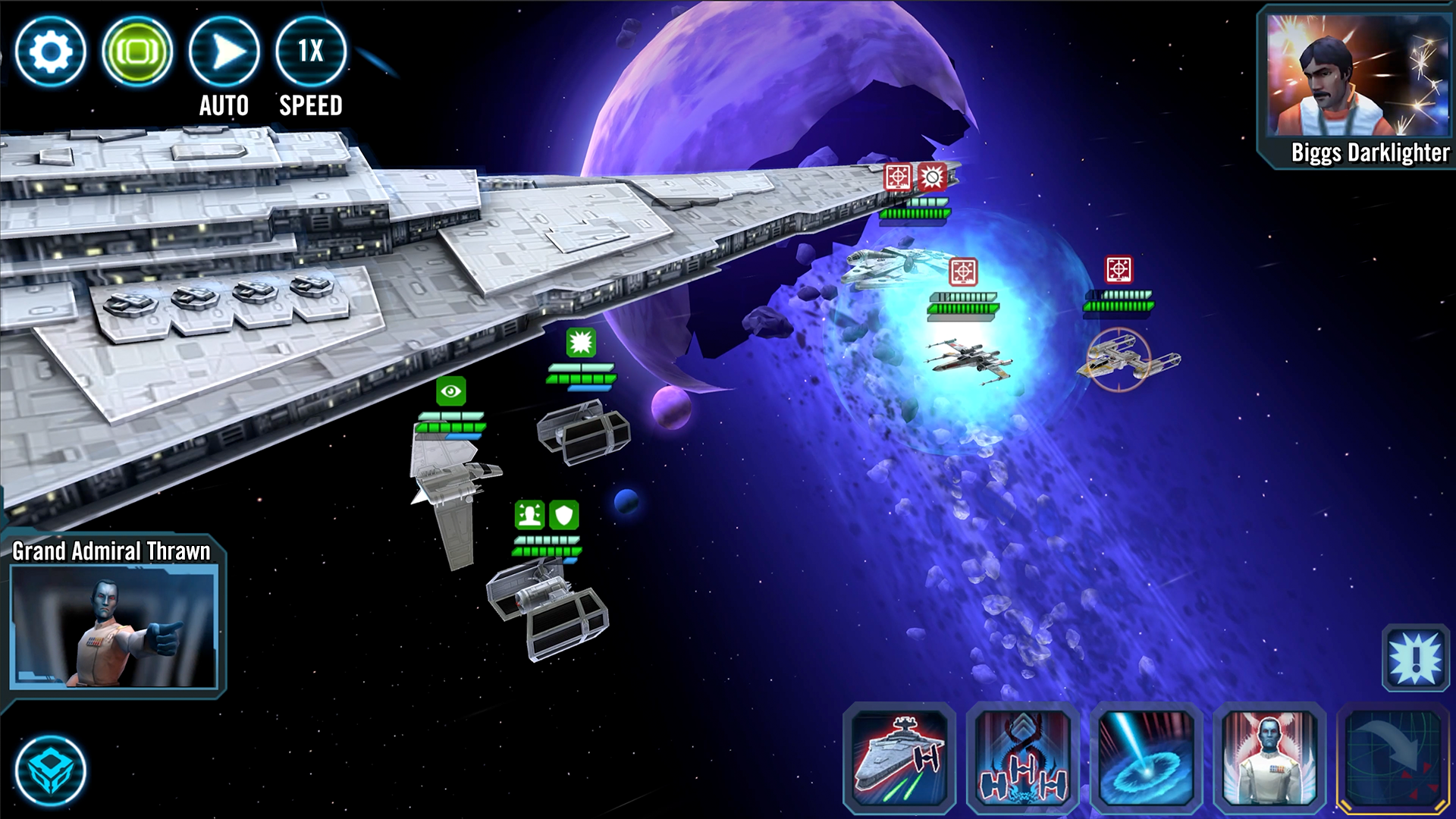 Compete in Squad Cantina Battles and PvP Squad Arenas to boost your heroes' attack power and climb the ranks.
