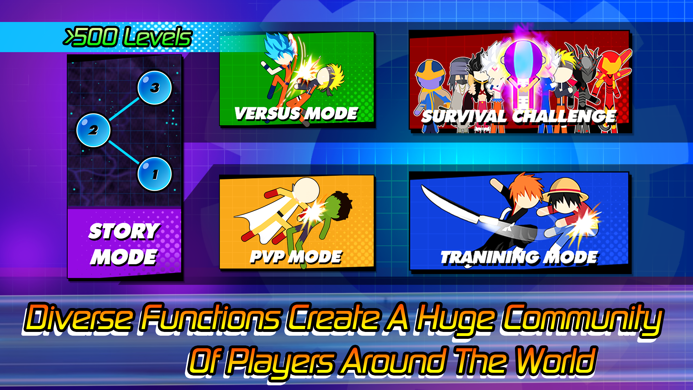 In the chaos that unfolds in Super Stick Fight All-Star Hero, players are met with hundreds of exhilarating challenges. Each level offers unique hurdles designed to test your skills and strategy as you progress through increasingly difficult terrains. With a diverse roster of over 140 distinct heroes, each possessing formidable abilities, players can forge personalized paths to victory. Upgrade your heroes using collectible items, allowing them to unleash devastating attacks.
