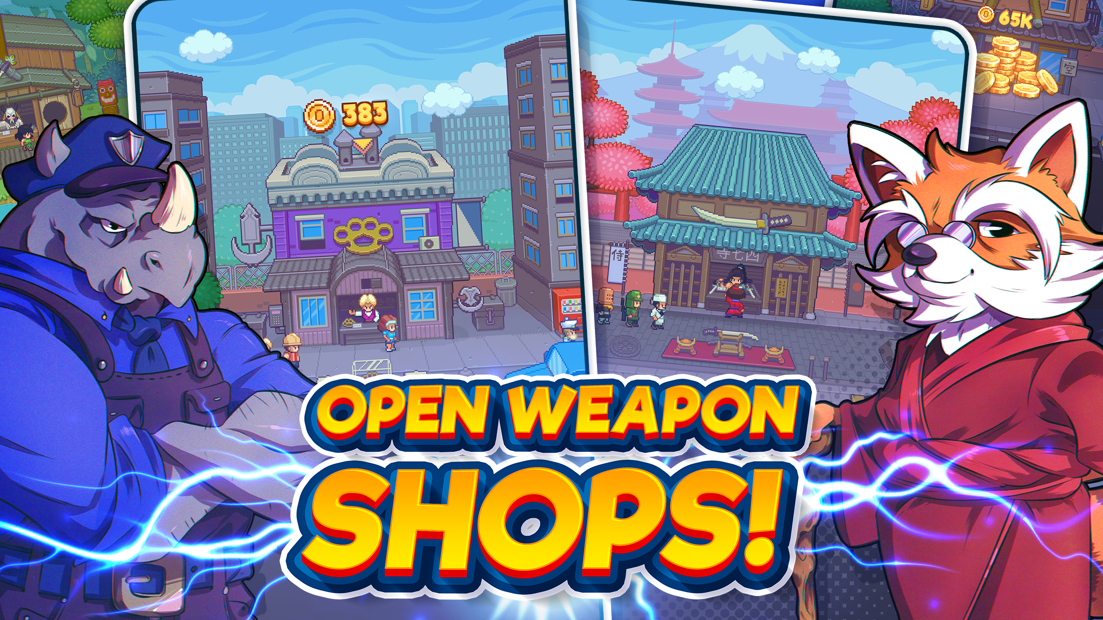 Open martial arts weapon shops where citizens can buy weapons and gear, expanding your brand even when you're not playing.