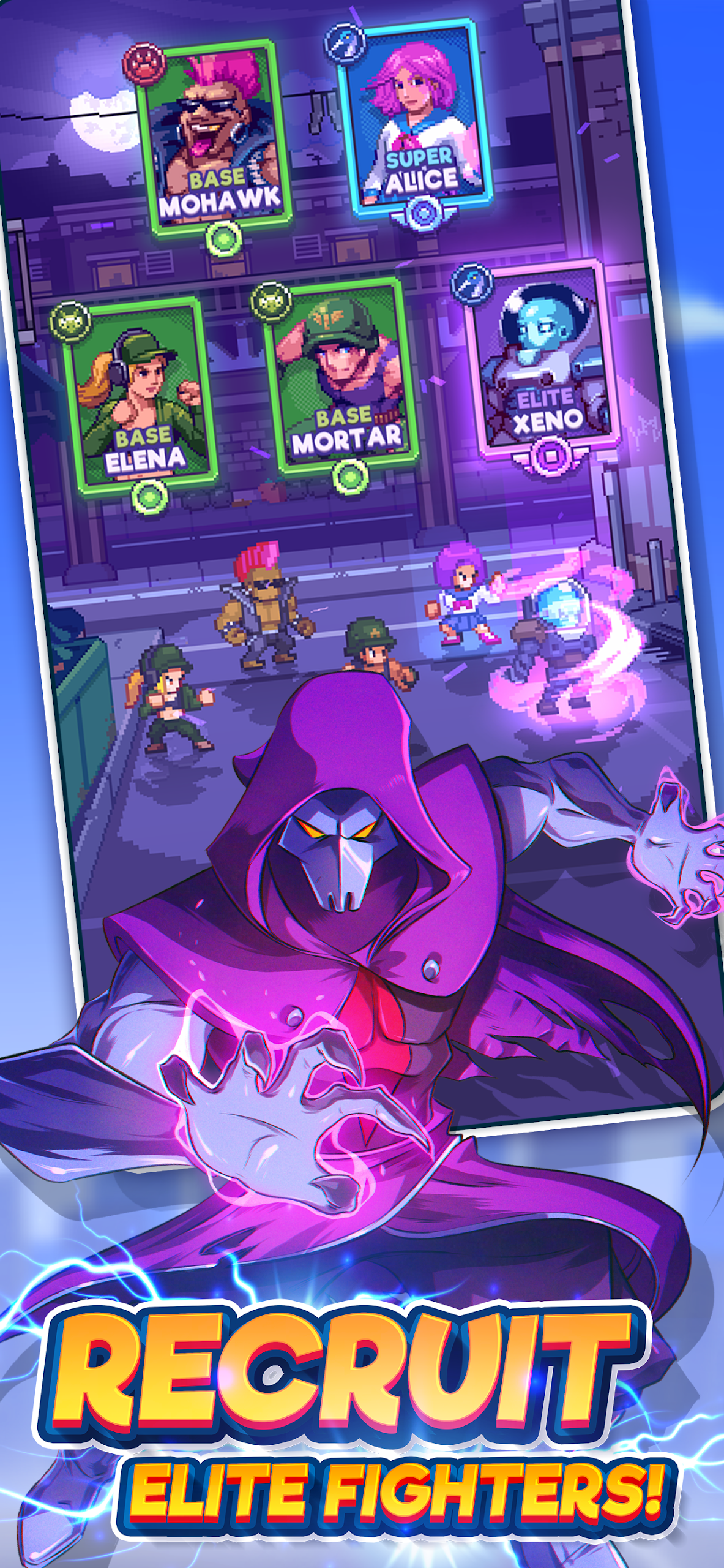 Welcome to Tap Force, an exciting new hero collector auto battle RPG that transports you straight back to the nostalgic 90s! Dive into the vibrant streets of Metro City and assemble a formidable team of 16-bit pixel fighters, challenging players around the globe in strategic battles that take place even while you're offline. That's right; your weapon shop can earn gold for you as you take a break!