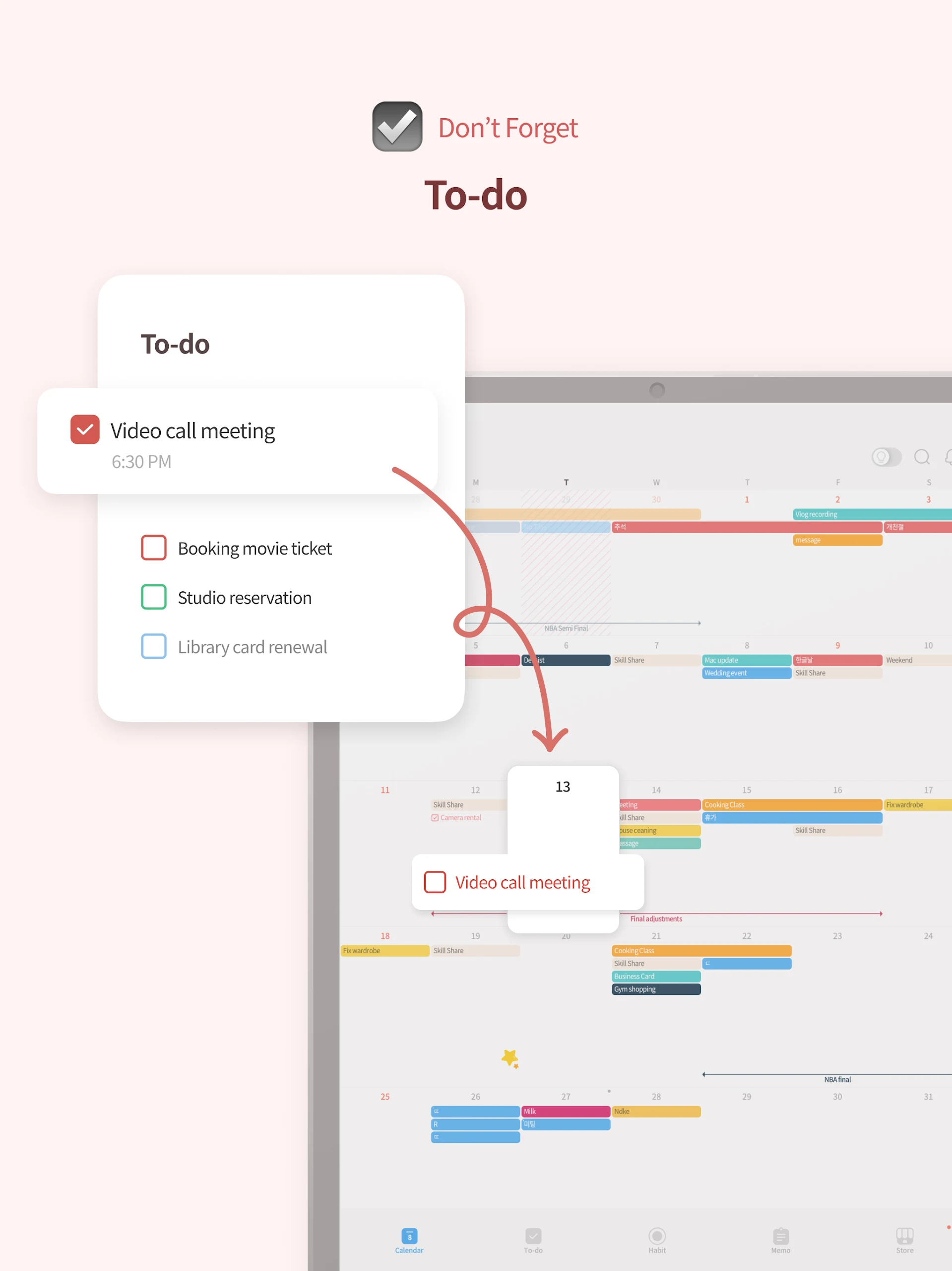 This app isn’t just about making plans; it’s about developing new habits too! With the mini Habit Calendar, you can track and manage healthy routines, making it easier to commit. Can't set a precise date? No worries! Store informal schedules in a planner for future reference.