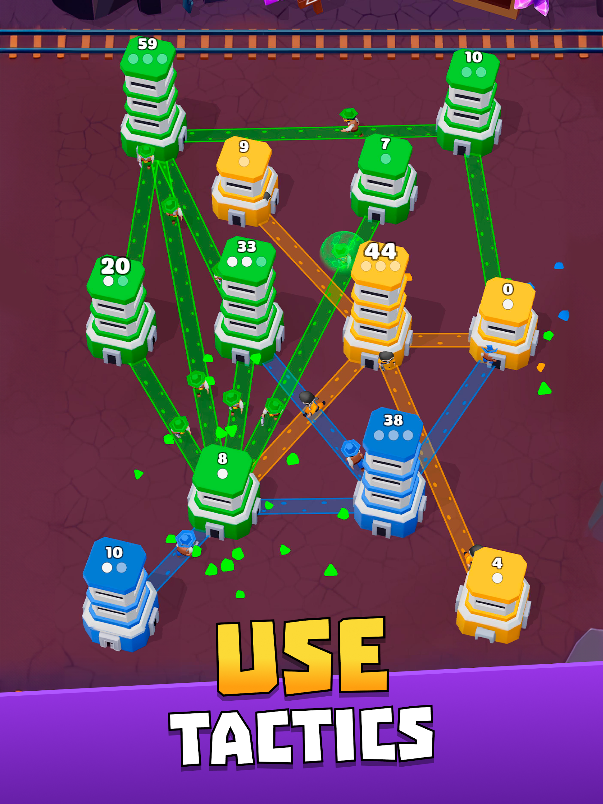 When it comes to tower wars, adding more troops to one side of the conflict is vital. Establish a communication link between allied structures, and watch your troops march seamlessly toward victory! However, beware: the number of soldiers stationed at your original tower remains fixed, necessitating immediate reinforcements if under constant siege.