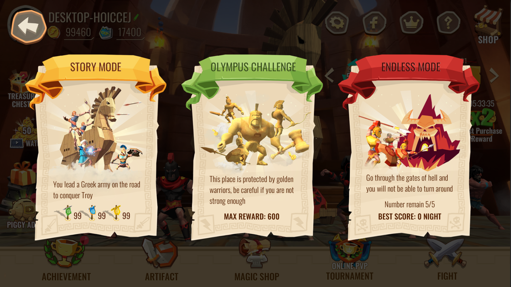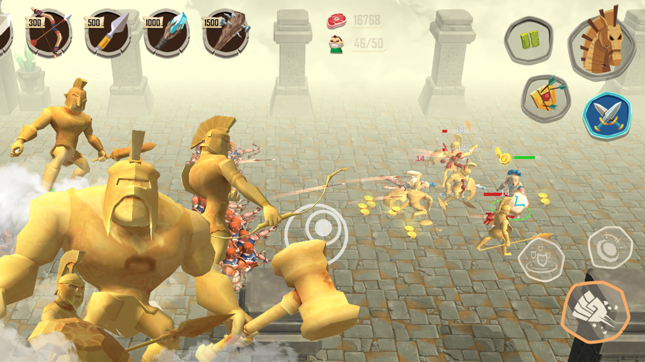 The war weaves a profound connection between mortal endeavors and celestial interventions. Incensed by Paris' transgressions, the gods decided to imbue the Greek forces with their divine qualities. Players must collect gold coins to empower their forces, transforming ordinary soldiers into unstoppable warriors. With each piece of treasure, holy items will accumulate, further preparing you for the monumental task of rescuing Queen Helen from within Troy’s city limits.