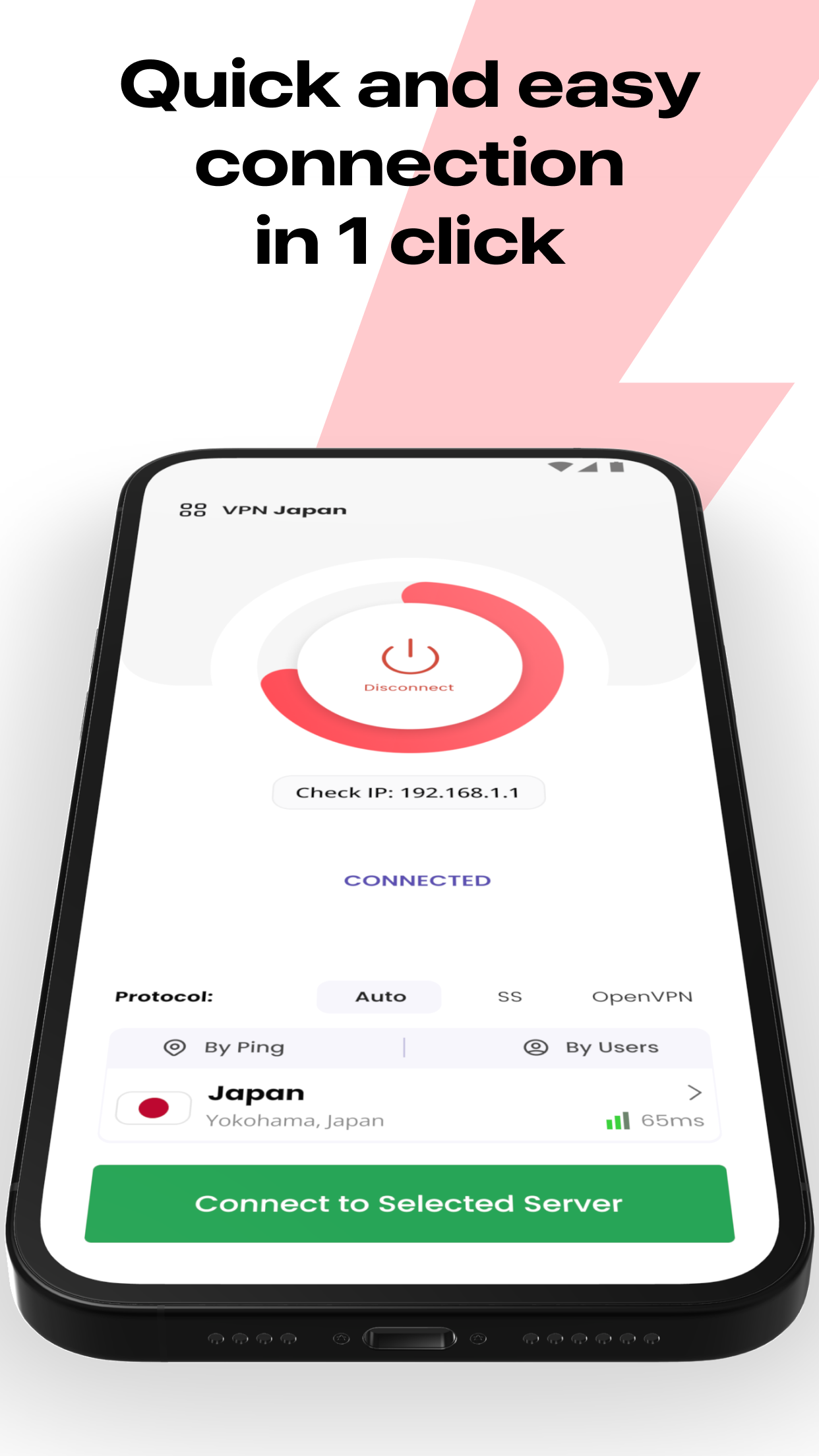 We’ve designed intuitive controls just for you! Two separate connection buttons let you pick a specific VPN or go straight for a Japanese connection—easy-peasy!