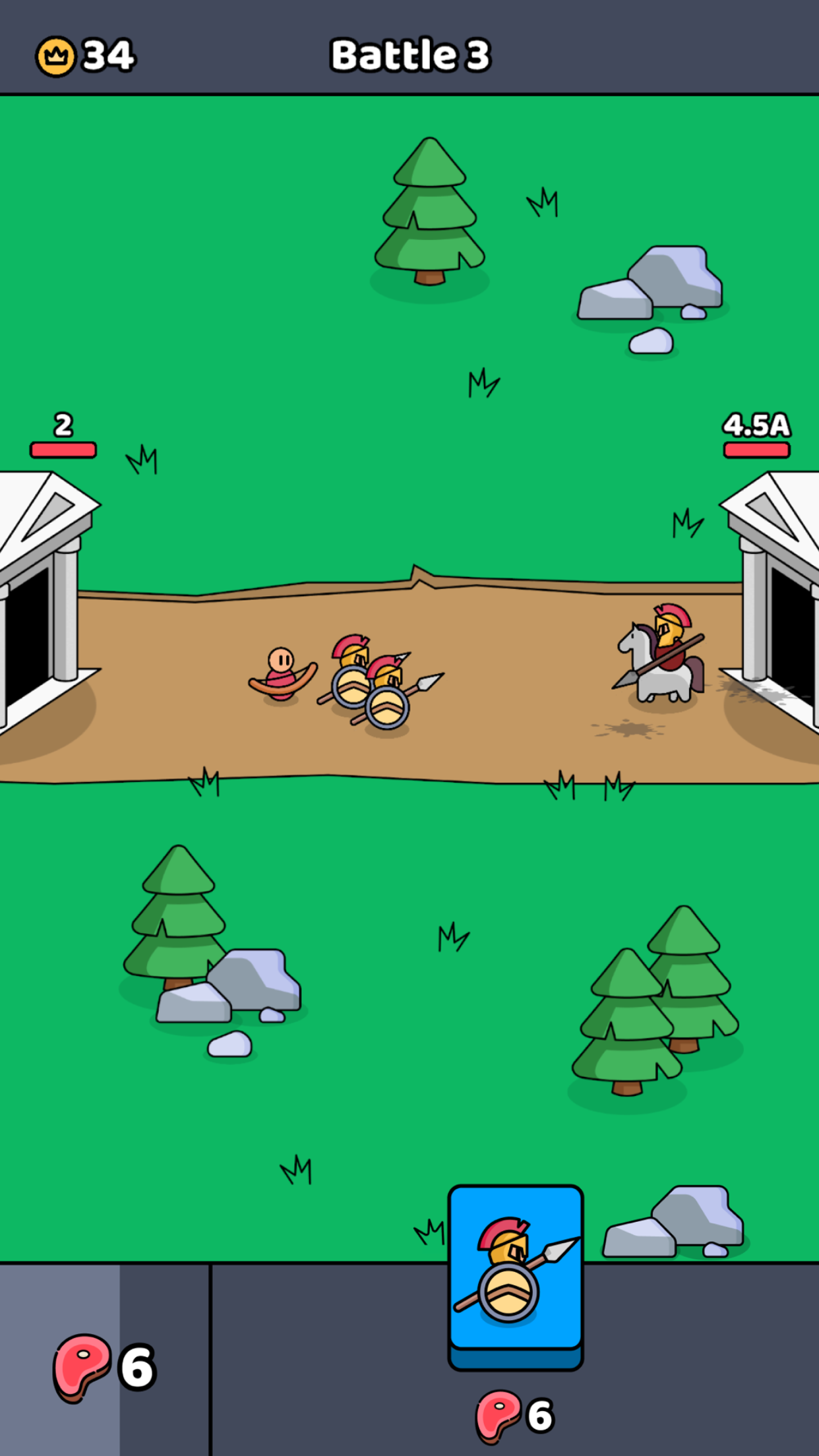 When gearing up for battle in *We Are Warriors!*, you'll step onto a deceptively simple battlefield. Both sides face off: your base on the left and your opponent's on the right. Battles commence as leaders muster their elite troops and watch them clash in epic showdowns.